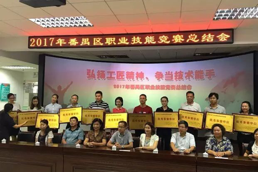 9月8日上午,广州市番禺区人力资源和社会保障局组织召开2017年度番禺区职业技能竞赛总结会议,通报表彰了在竞赛中取得优异成绩的选手和积极宣传组织、发动选手参赛的镇街、企业。我司在本次竞赛中的积极宣传和推动得到了有关部门的高度认可,荣获“番禺区工人先锋号”称号及“优秀参赛单位”殊荣。
