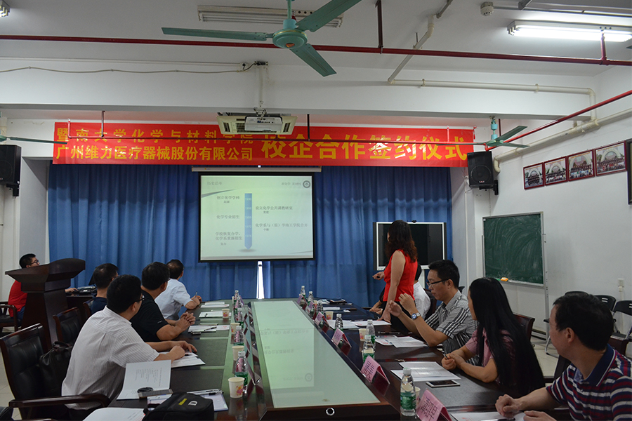 仪式上双方就进一步深化校企合作模式进行了深入探讨,一致认为合作的模式可以为:合作建立“暨南大学化学与材料教育实践基地”、参观见习、企业探秘活动、维力医疗走进校园系列讲座/分享会、参与筹办材料创新等挑战赛活动、产学研及其他项目等,未来希望能够开发更多实质性的合作,充分整合各自优势资源、优势互补,实现产学研深度融合,提升创新能力,达到合作双赢。