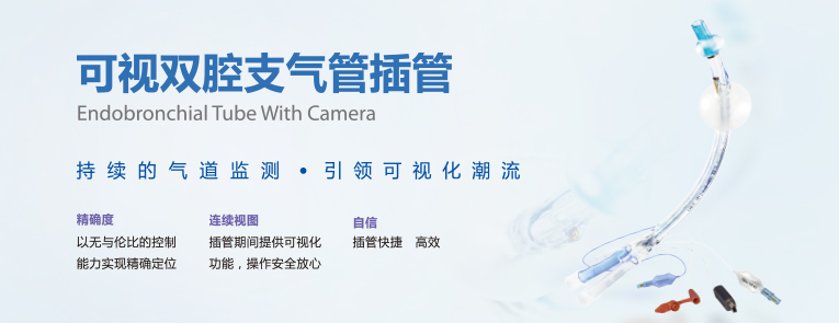 可视双腔支气管插管是中国首款带有集成式高分辨率摄像 机的一次性无菌双腔支气管插管,克服了当前DLT安放和 定位困难的问题,并可以在术中提供持续的气道检测。